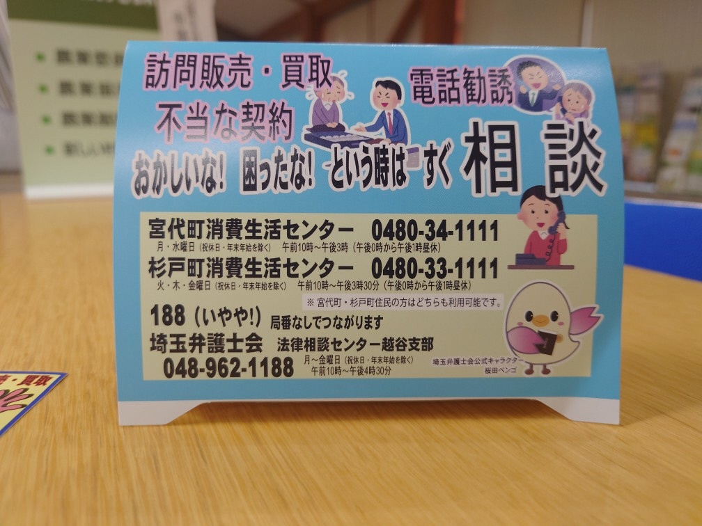 埼玉弁護士会から、消費生活啓発グッズのPOP及びステッカーのご寄付を頂きました。