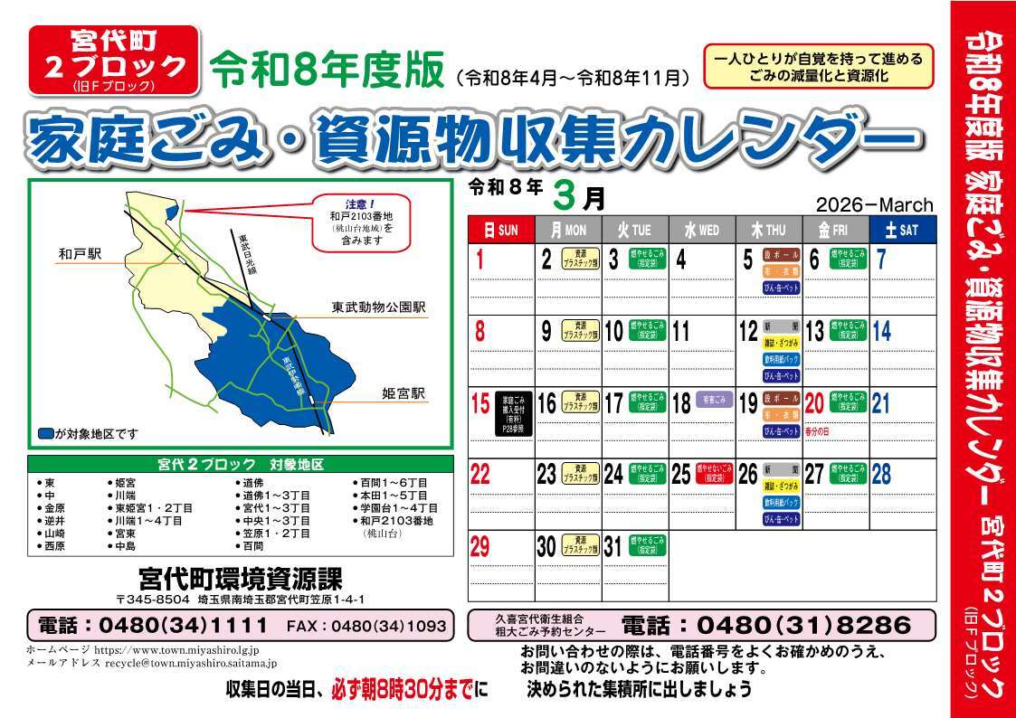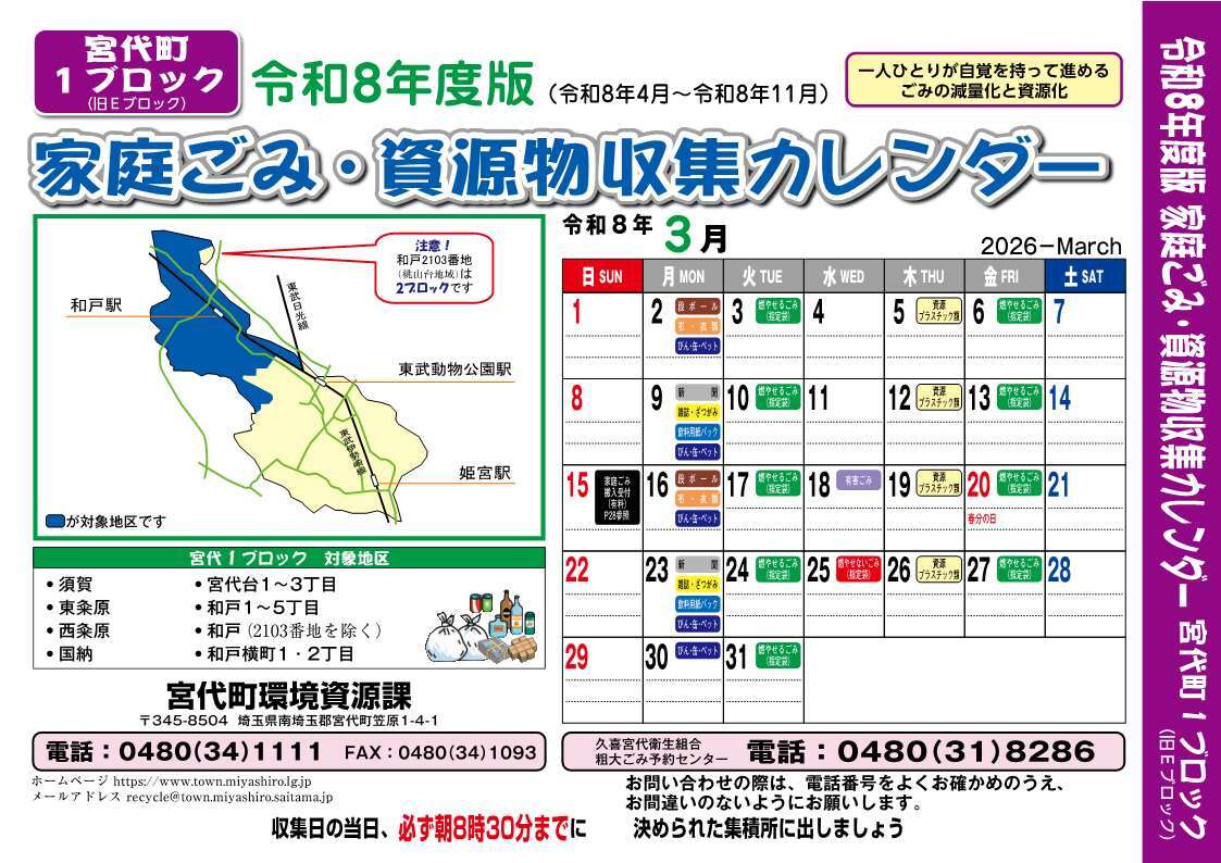 1ブロック(旧Eブロック)PDF形式、6.26MB対象地区 須賀、東粂原、西粂原、国納、宮代台1~3丁目、和戸1~5丁目、和戸(2103番地を除く)、和戸横町1・2丁目