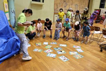 その他、わなげでクイズ!、ボッチャdeみんなのふくしかるた&ミニバザー、プラバンキーホルダーづくりなども開催。ボッチャかるたの所では、かるたの「く」の札の絵を描いたという少年が、「絵は描いたけどやるのは初めて。」と言って並んでいました。