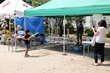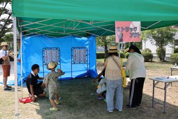 コミュニティ広場では、各ブースのシールを集めて抽選会に参加できる「みんなでチャレンジ2025」が開催。暑いなかではありますが、大勢の子ども達が参加していました。