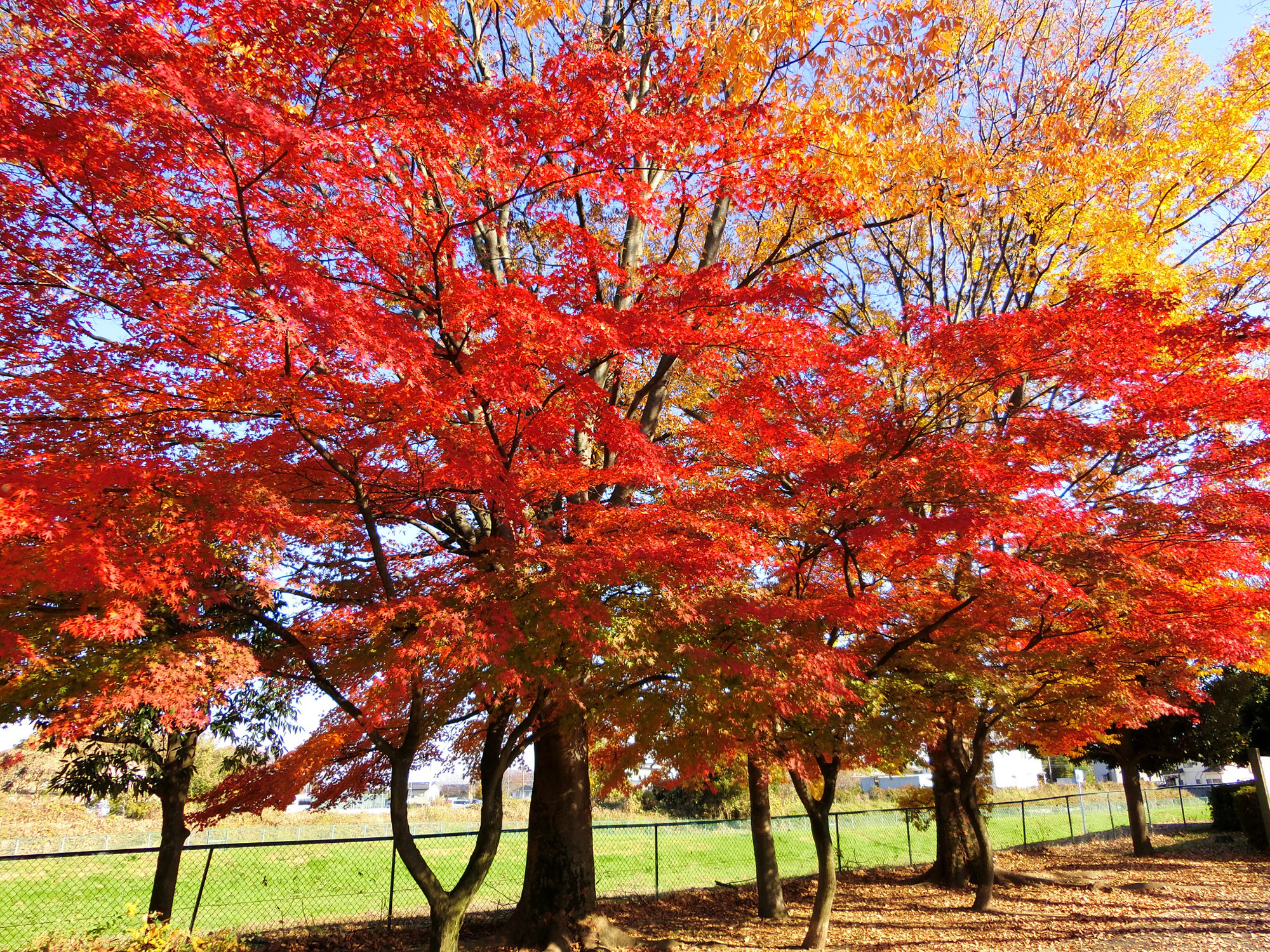 11月は紅葉黄葉の季節。宮代町でも秋色に染まった風景をいろいろなところで見ることができます。モミジの赤色が青空に映えるぐるる宮代、日工大天満宮。また存在感のある西光院のイチョウ・・・。新しい村の池付近のエノキ、東武動物公園のメタセコイアなども色づき、見ごたえがあります。スライドショー(ショート動画)も制作していますので、写真と合わせてご高覧いただけますと幸いです。
