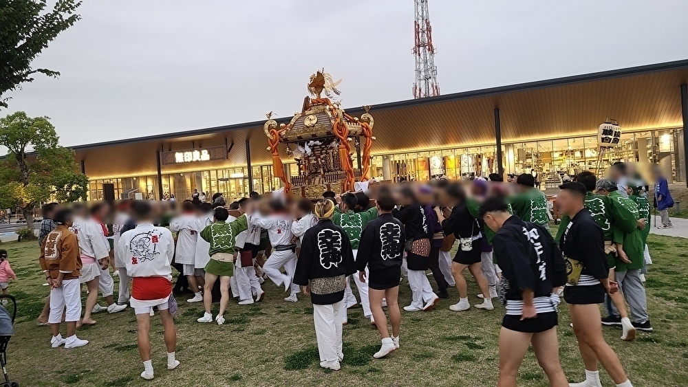 自転車や商品券など、なにが当たるかドキドキのおたのしみ抽選会のあとは、大人神輿の巡行が始まりました。他の地区からも担ぎ手が参加し、大いに盛り上がりました。