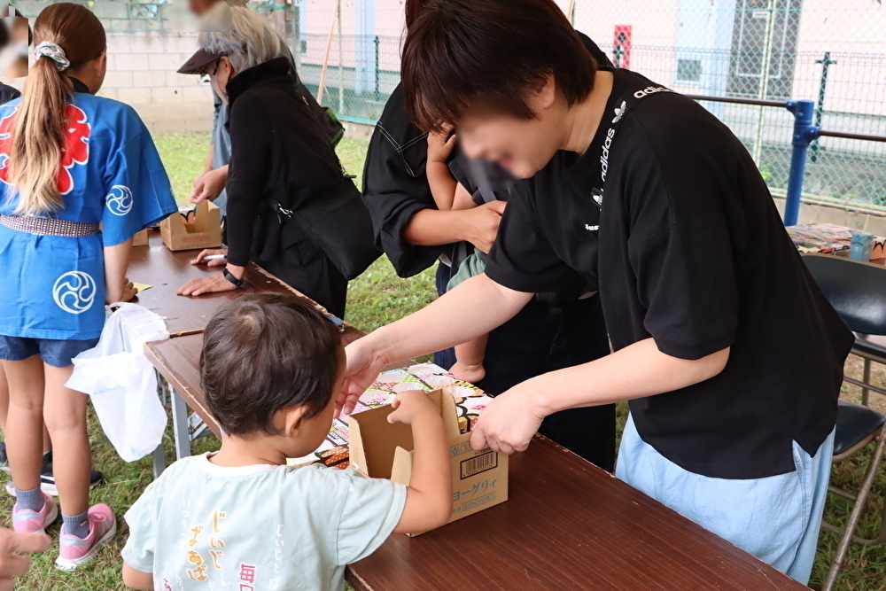 大人も子どもも、みんなでおいしい食べ物とゲームを楽しみました。子どもたちが列に並んでいる時のワクワクした様子と、景品や食べ物をもらった時の嬉しそうな表情が印象的でした。