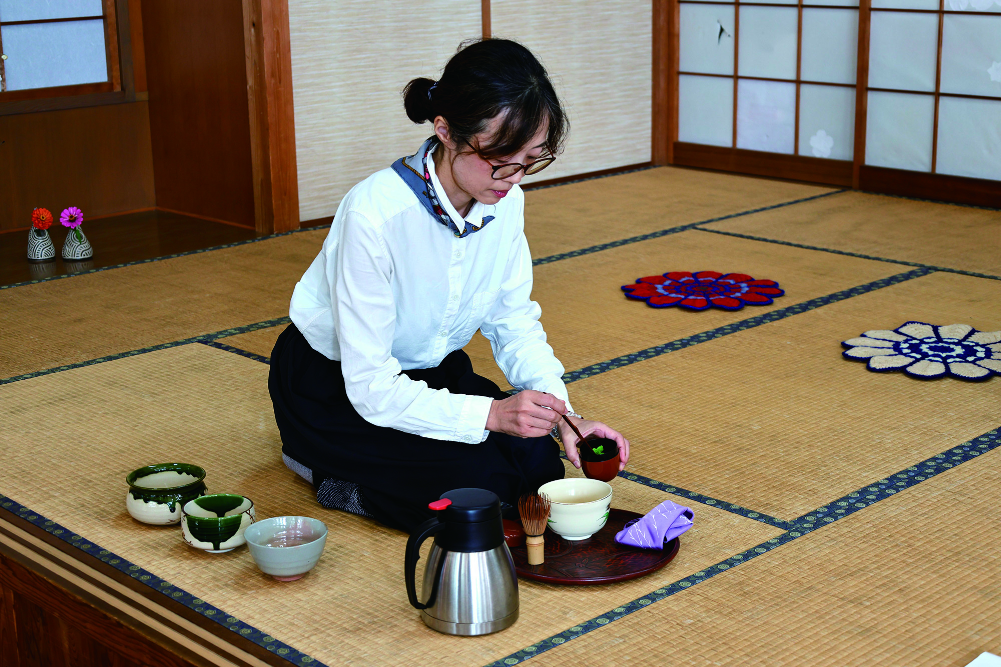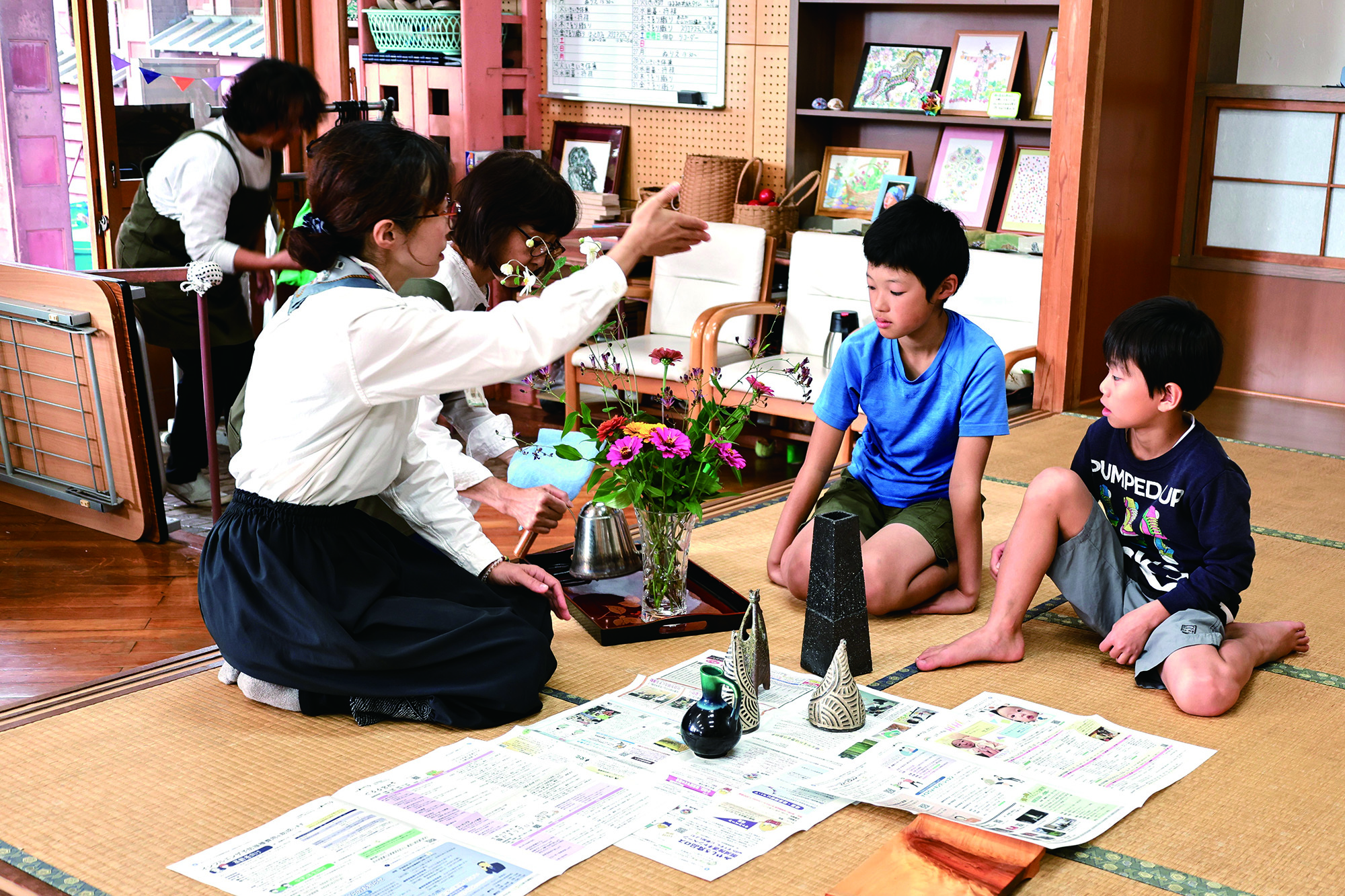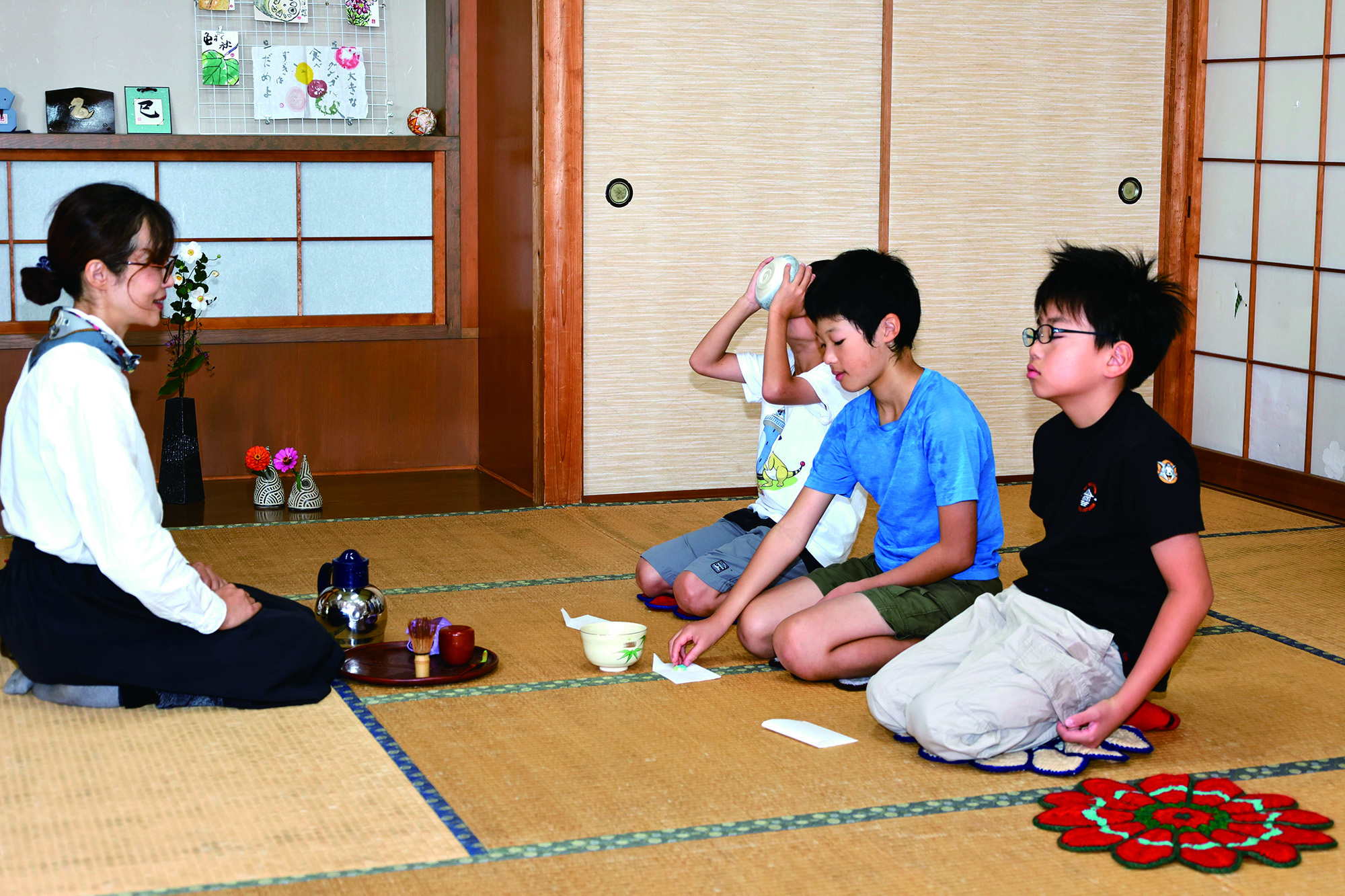 奈穂子さんのお子さんが幼稚園の時に、友達のお母さん達から、子ども達にお茶を教えてほしいと頼まれましたが、当時コロナ禍で開催できなかったそうです。その子どもたちが小学校1年生になった時、進修館の人に声を掛けられ、進修館で開催することができたのですが、60人以上の人が集まり、部屋に入りきれなかったので、翌年明けにもう一度60人の人数制限をして開催したそうです。それから毎月開催するようになり、その後、進修館から陽だまりサロンに場所を変え、ここで毎月1回開催しているそうです。井上さんは「最近は、核家族が多くなって、子どもたちが、おじいちゃん、おばあちゃんと触れ合う機会が少なくなってきています。子どもたちはゲームや、ケータイ等で遊ぶようになり、コミュニケーションの能力がどうなってしまうのかが気がかりで・・・。お茶というのは、子どもから年配の方達まで年齢層の幅が広いので、どなたでも来て頂いて交流ができたらいいなと思い、開催しています。」と言っていました。そして、「お茶というと作法や正座が、などと言われますが、私が今ここでやっているお茶は、作法ではなく、ちょっと立ち寄ってお茶でも飲んでいきませんか(きっさこ)というように、人と人のコミュニケーション、繋がりが持てるよう、どなたでも気軽に来てほしい!」「特に子どもと祖父母くらいの年配の方たちがコミュニケーションを取れると、お互いに良い情報交換ができ、子どもの見守りや子どもの居場所などに発展していくのではないでしょうか。」とも言っていました。