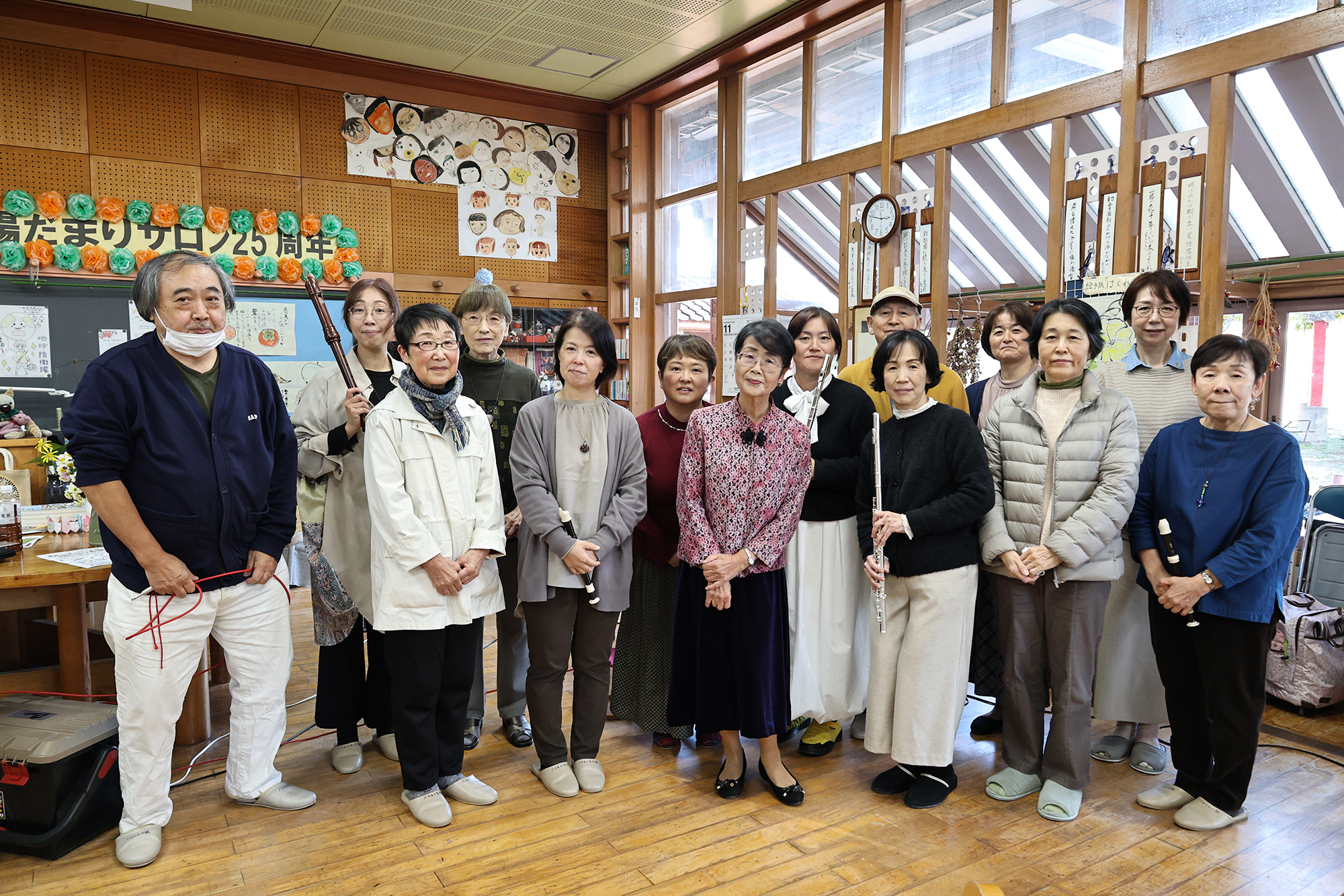 始めは、今回初参加の「アルシェ」というユニットで、二胡という中国の楽器と、クラシックギターを演奏する女性2人です。オープニング曲「故郷の人」以下3曲の全4曲、次いで「ハミングぺコラ」というフルート演奏のお二人です。二人の子どもさんが、小学生の時にお互いがフルートを習っていたということを知り、一緒に演奏するようになったそうです。NHK教育番組でおなじみの「ピタゴラスイッチ」のオープニング曲、2曲目はチムチムチェリー、そしてフニクリフニクラ、コラールの4曲を演奏しました。3番目のグループは、道佛集会所で定期的に演奏している女性二人の「は~もに~」で、「時の踊り」、「イエスタディ」、「秋メドレー」、「動物の謝肉祭・終曲」の4曲をピアノで演奏しました。その後、毎月第4土曜日に、この陽だまりサロンで演奏している「アンソレイユ」の皆さんの紹介があり、リコーダーの演奏がはじまりました。このグループとしての活動を始めたきっかけは、子どもたちが学校で使っていたリコーダーが、子どもたちの卒業とともに空き、「このリコーダー吹いてみようか」ということがきっかけとか。また、名前の由来は、陽だまりを意味するフランス語から名付けたそうです。リコーダーは年配の方であれば学校で一度は手にしたことがあるのではないでしょうか。そんな「アンソレイユ」の皆さんの演奏は、アンパンマン原作者「やなせ たかし」作曲「いずみ たく」作曲の「手のひらを太陽に」、NHKの朝ドラの主題歌「笑ったり転んだり」をはじめ、童謡、里の秋、坂本九さんの「上を向いて歩こう」、「見上げてごらん夜の星を」の5曲で締めくくられました。