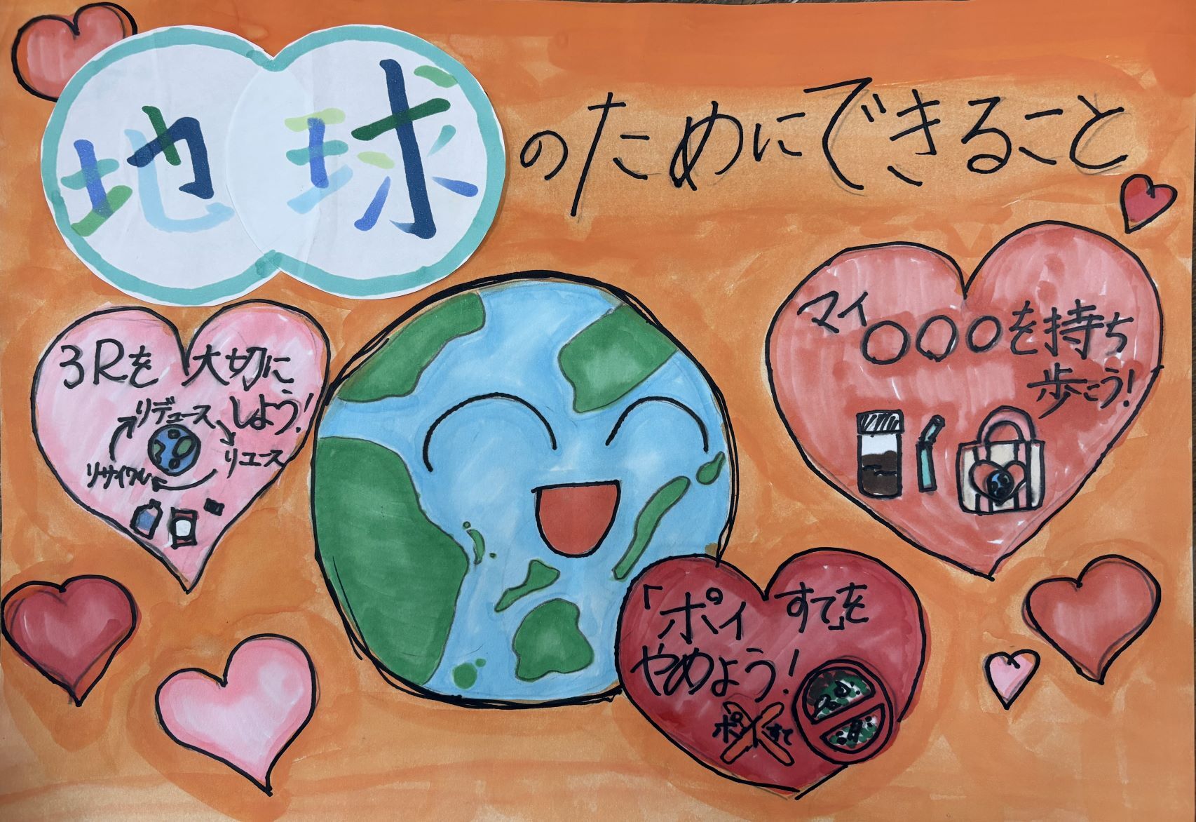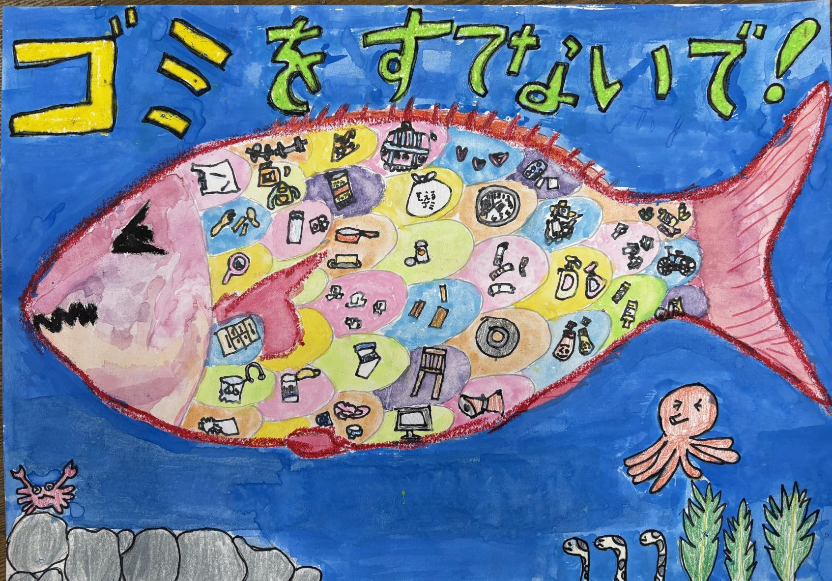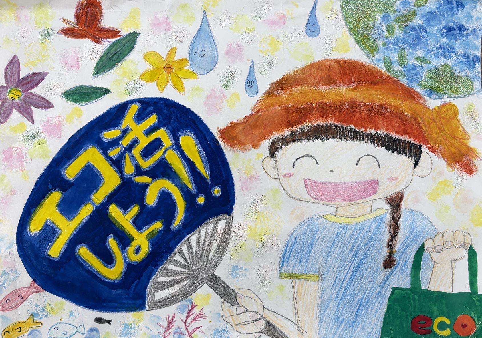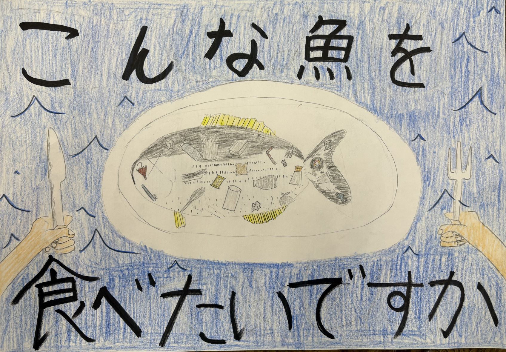 平田さんの感想 「SDGsの目標の中に、海をきれいにしようという目標があることを知ってこのポスターを描きました。そして、海がきれいになることを願って描きました。今回の受賞はとても嬉しいです。」