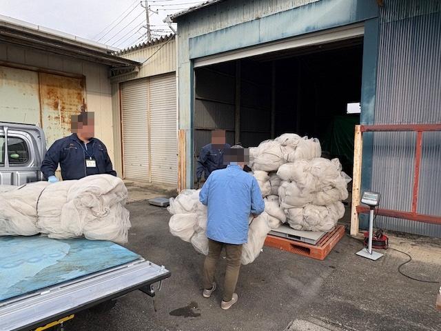 12月11日にJA南彩宮代支店倉庫前にて行われた回収・計量では肥料袋やマルチシート等被覆資材の他、防雹ネットなど計2,468kgの廃棄物が集まりました。