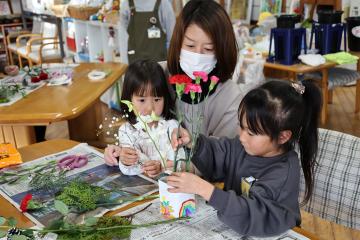 花育は、直接花を触るので、触感や香り、また自由に作る想像力がとくに小さい子どもさんにはすごく良いとのことでした。