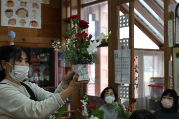 皆さん綺麗に作られているので、生け花などしているのかと思い聞いてみると、花瓶に生けるぐらいで生け花等の経験はないと言っていました。季節の花、草花、野草等と、ちょっとしたもので生けて飾ってみるのもいいかもしれませんね。