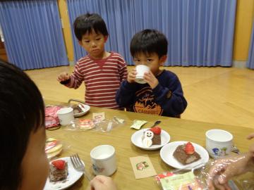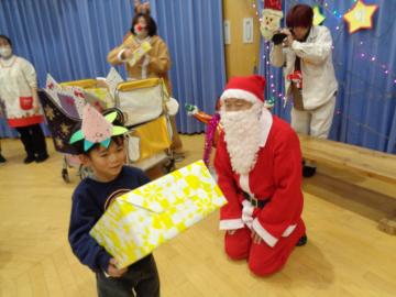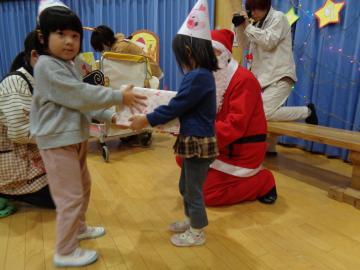 お待ちかねのプレゼントはクラスごとに。一人ひとり、お菓子のプレゼントも貰いました。