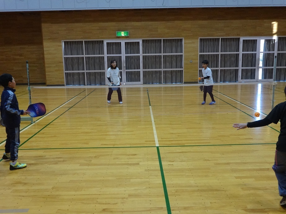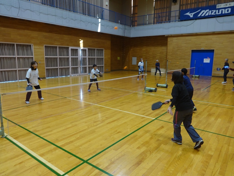 ピックルボールは現在巷で注目されていることもあり、町民の皆さんも興味・関心の強い方が多いようで、小学生からシニア世代までの方々が参加されました。