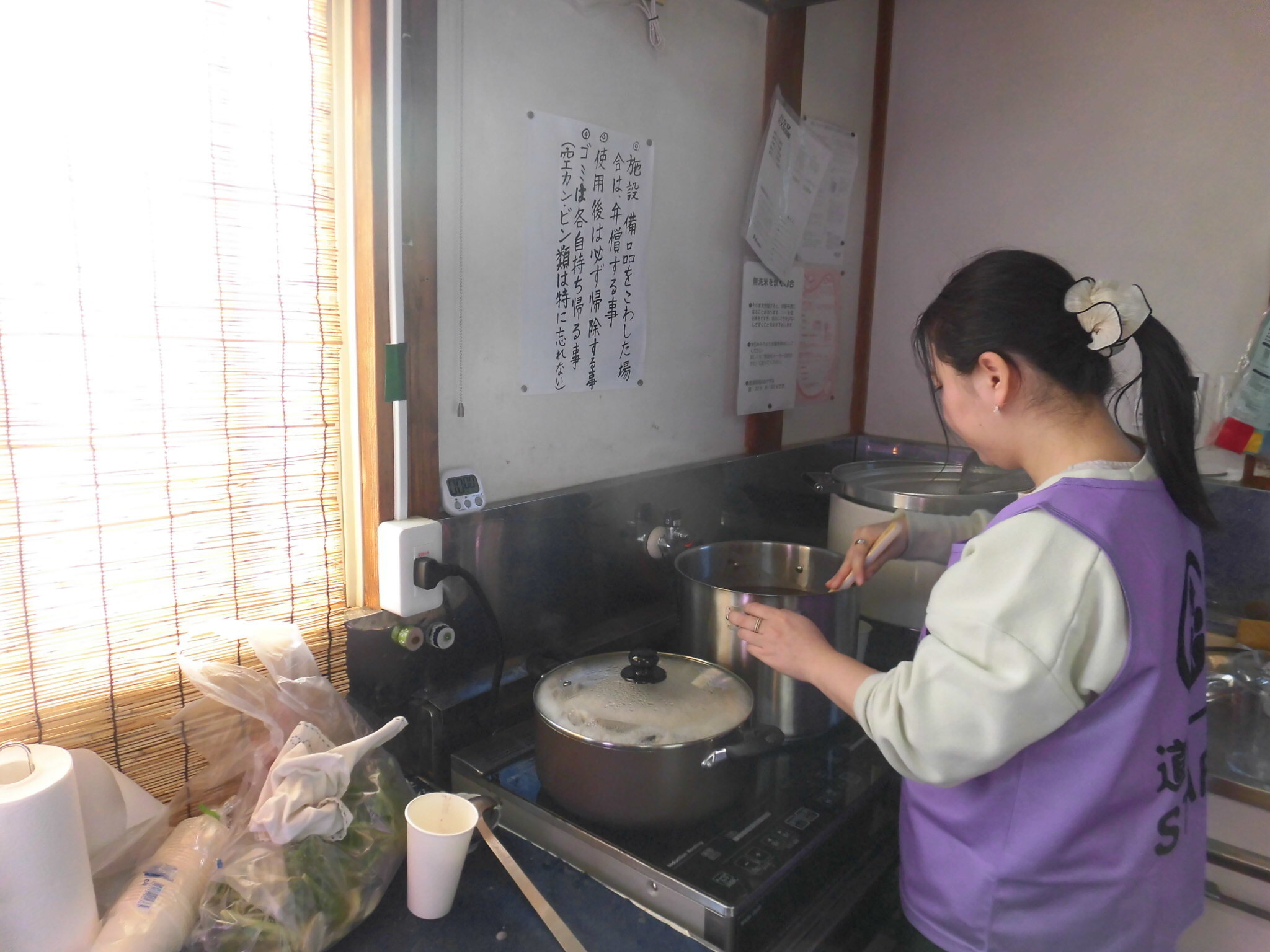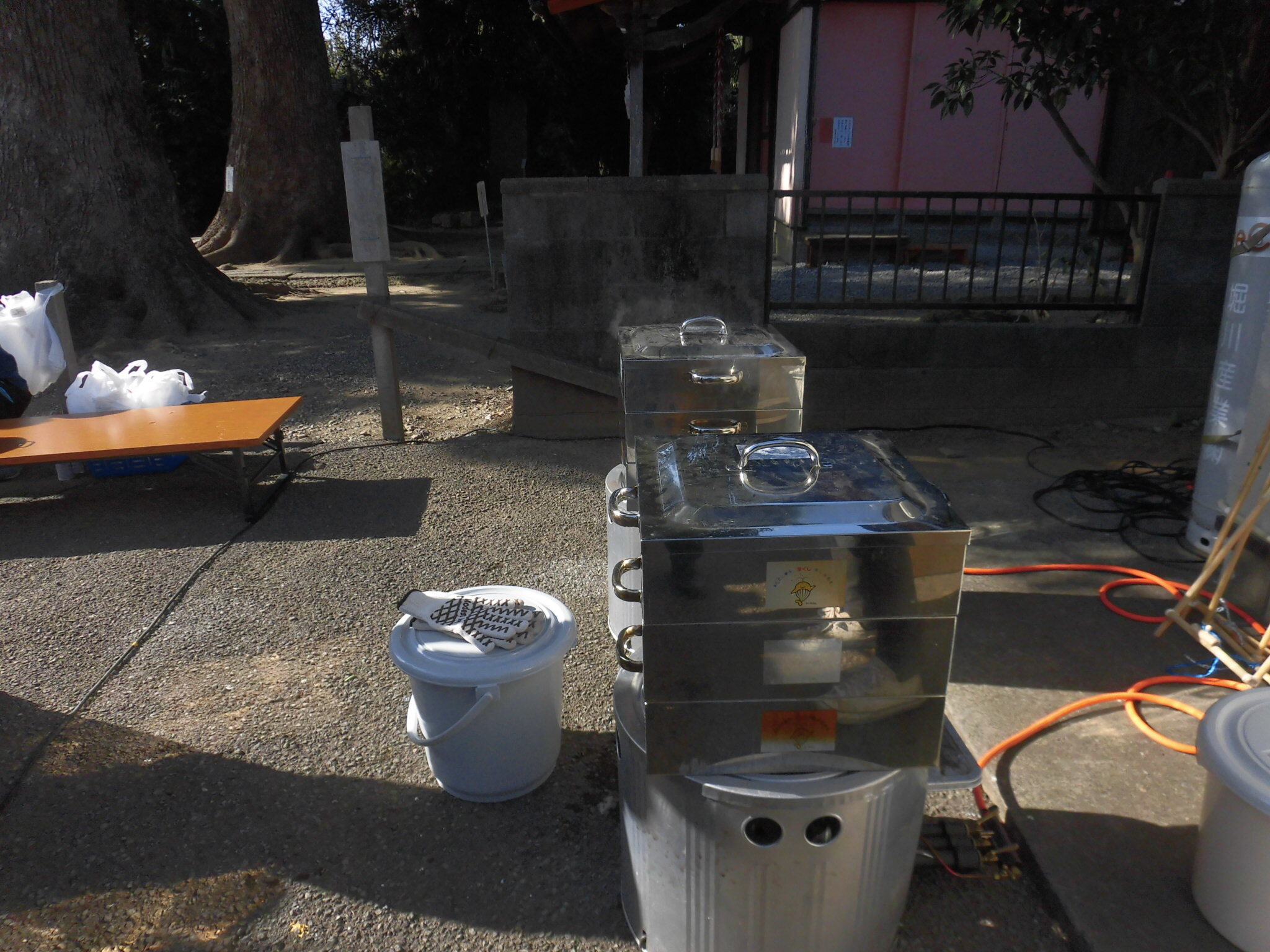 自治会の役員さんやボランティアの皆さんが朝早くから準備をし、道佛集会所はもち米を蒸かした良い香りに包まれていました。
