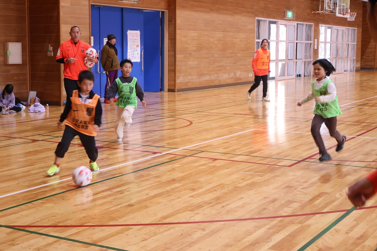 今回は講師として「浦和レッズハートフルクラブ」の方をお招きし、ぐるる宮代のメインアリーナを会場にサッカーを行いました。浦和レッズ等で活躍された選手の方から楽しくサッカーを教えていただき、とても貴重な体験となりました。参加された子どもたちの楽しそうにサッカーをプレーする様子や大きな声で仲間を応援する姿がすごく印象的でした。ご参加いただきありがとうございました!