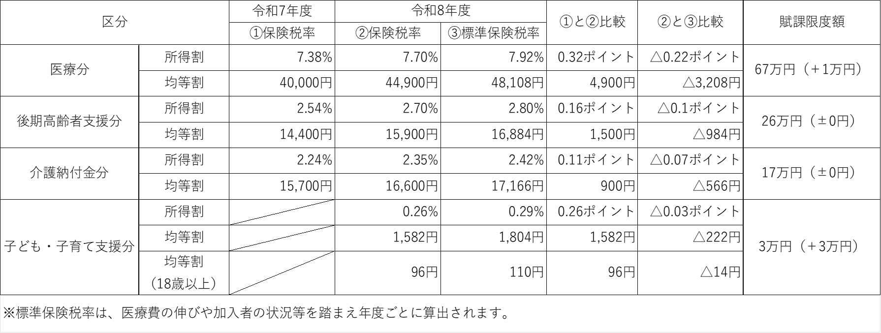 ■令和7年度保険税率と令和8年度保険税率・標準保険税率