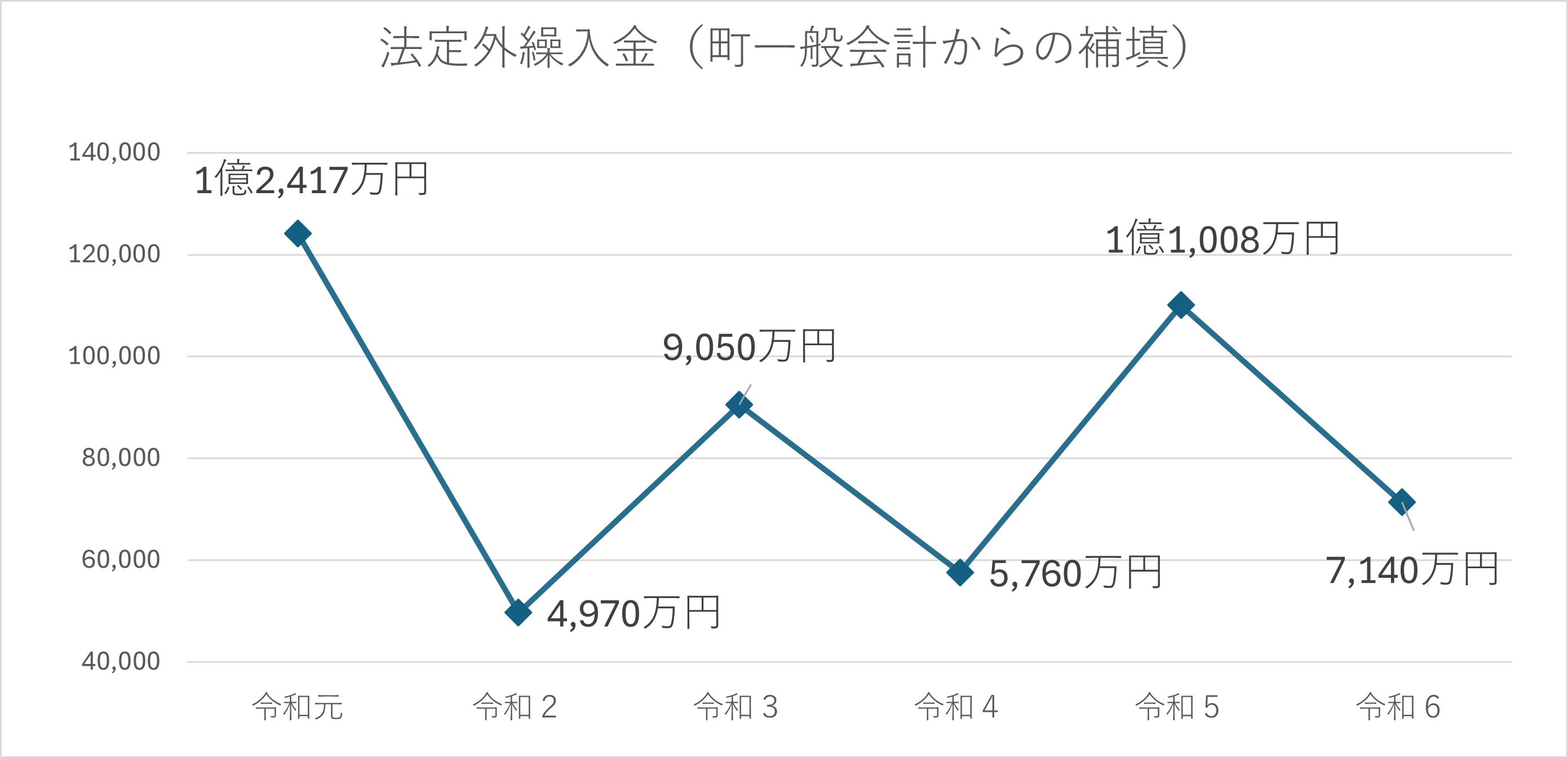 ・現在、町の国保財政は、支出に対して収入が不足する厳しい状況が続いています。国保特別会計は独立採算が原則ですが、この不足部分は、一般会計からの法定外繰入(赤字補填)で賄っています。今後さらに、法定外繰入金が増すと、国保制度の安定的な運営が難しくなります。