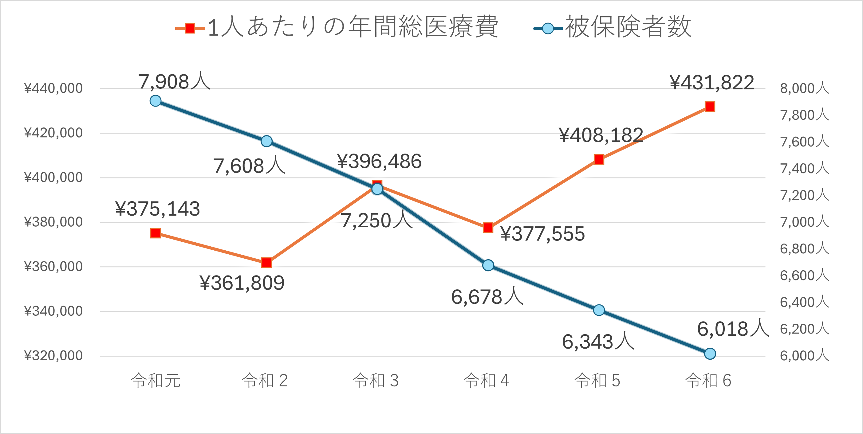 ・宮代町国民健康保険(以下、国保)は、加入者の高齢化や医療の高度化などにより、一人あたりの医療費が年々増加傾向にあります。合わせて、後期高齢者医療制度への加入者の移行や被用者保険の適用拡大等による加入者の減にともない国保税収入が減少しています。