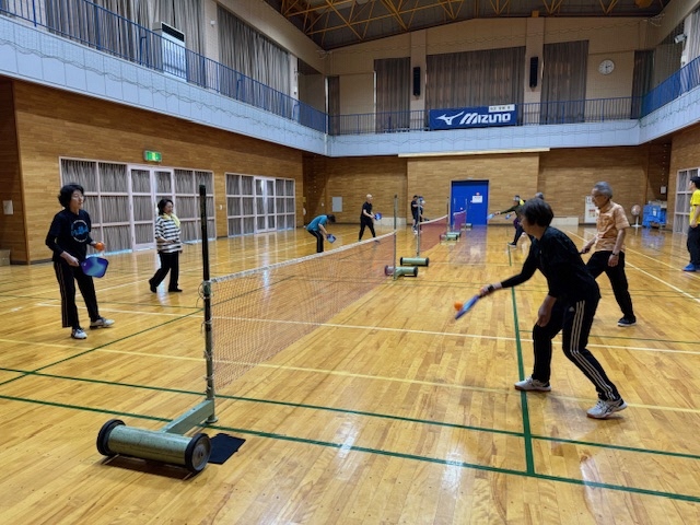今回は昨年度人気だったピックルボールをぐるる宮代のサブアリーナで行い、小学生からシニア世代まで合計11名の方にご参加いただきました。参加者のほとんどがピックルボールを初めて競技するとのことですが、2時間の活動で徐々に上達し、最後にはダブルスの試合を行うことができました。「楽しかった」、「またやりたい」などの感想をいただきました。ご参加いただきありがとうございました!